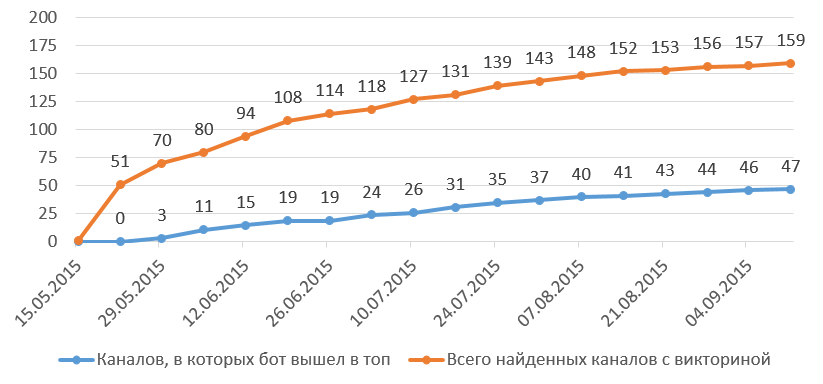 - Находится в топе ~50 каналов (из 160 с викториной)