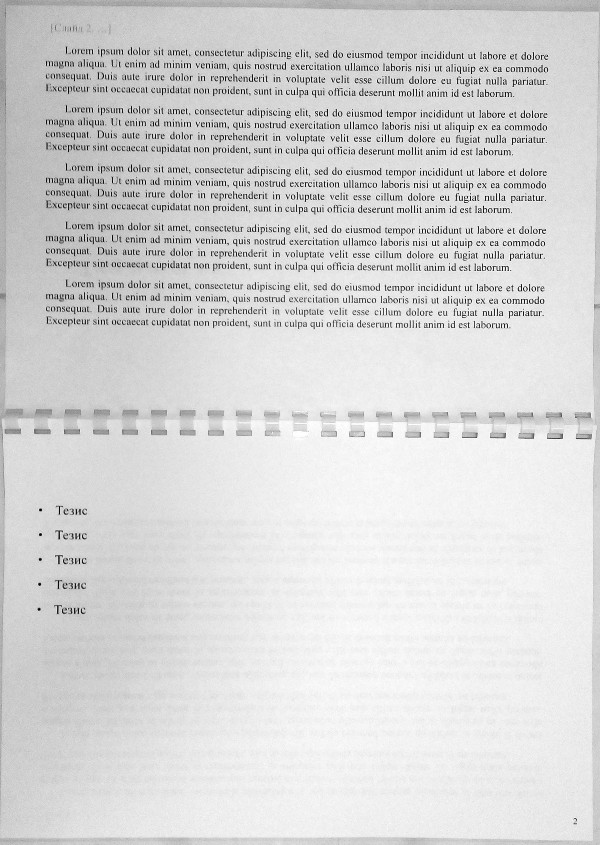 - Сверху — текст доклада для докладчика, который соответствует слайду ниже. Это также могут быть различные пометки или дополнительная информация. Он напечатан на обороте предыдущего слайда.