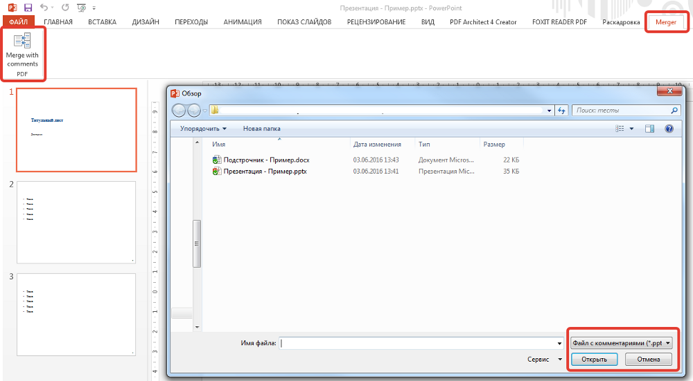 Надстройка для PowerPoint — Слияние презентации с подстрочником